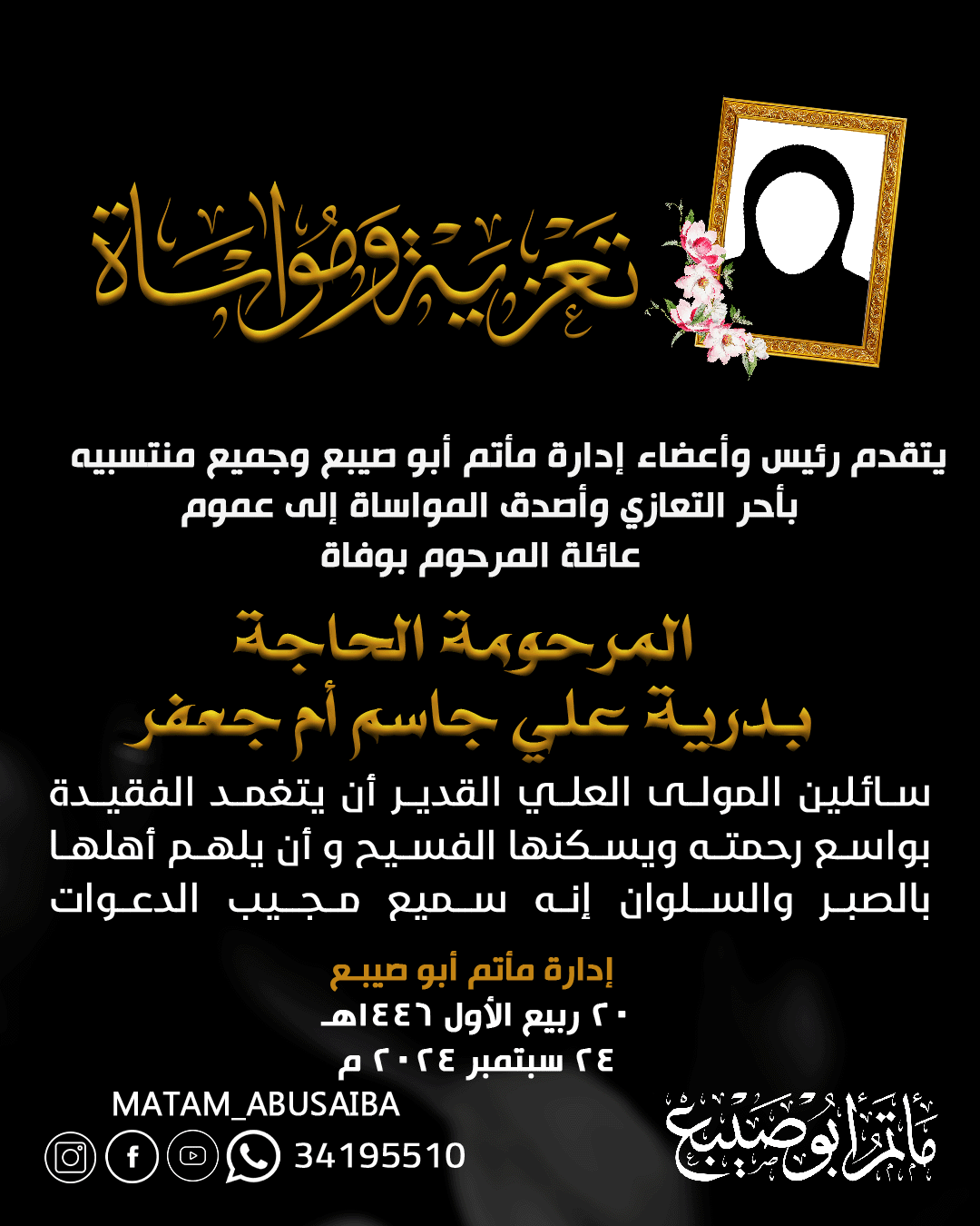 Home/اخبار ونشاطات/حالات الوفاة/تعزية المرحومة الحاجة بدرية علي جاسم Uncategorized تعزية المرحومة الحاجة بدرية علي جاسم ali lutfalla Send an email 26 شتنبر، 20240 840 Less than a minute ali lutfalla Send an email 26 شتنبر، 20240 840 Less than a minute Share Facebook X WhatsApp Telegram Share via Email Print