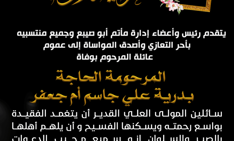 تعزية المرحومة الحاجة بدرية علي جاسم